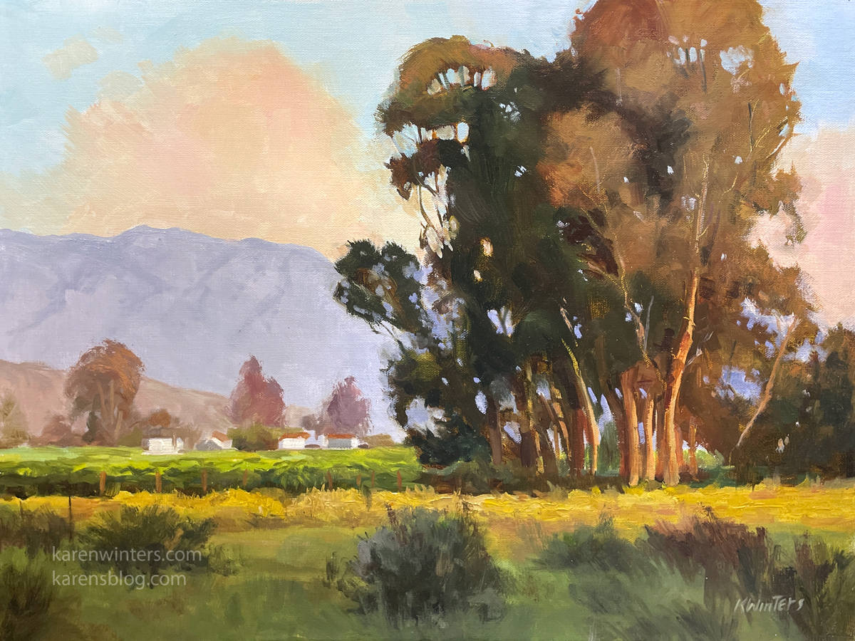 ![]() Once Upon a Vineyard 14 x 18 inches oil painting More vineyard paintings More Eucalyptus Paintings |