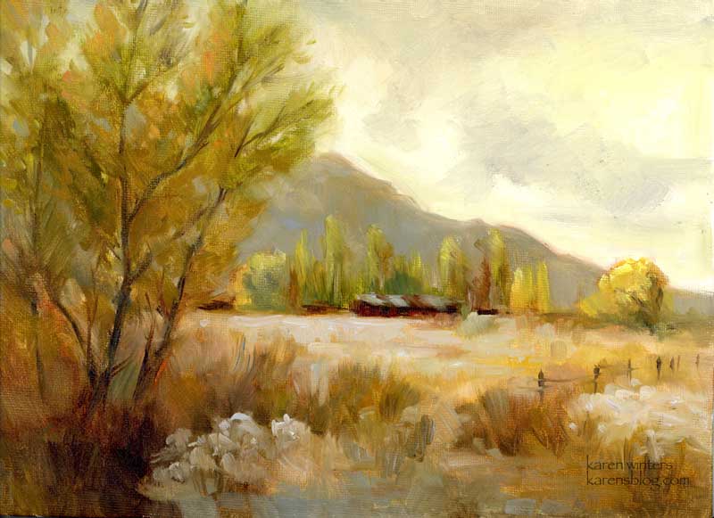 ![]() Sheltered by the Sierra 9 x 12 inches oil painting California Sierra landscape More Sierra paintings |